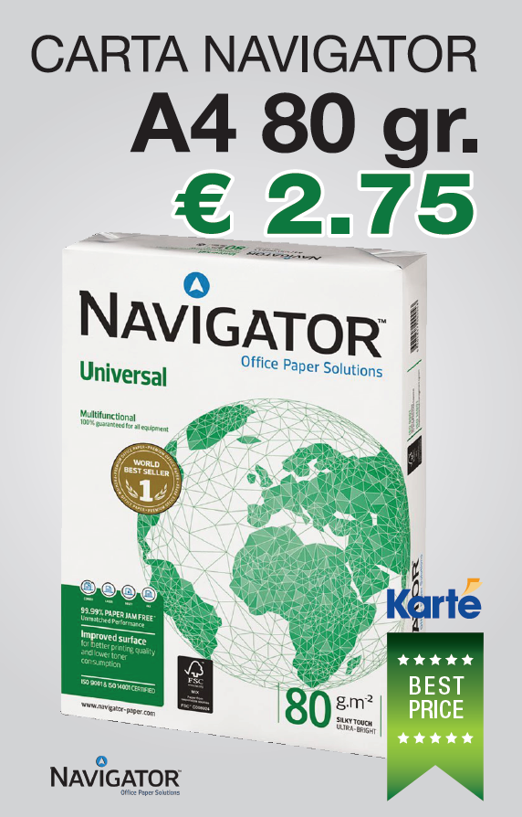 Aumenta la produttività del tuo ufficio con i Best Price nei negozi Karté! Dal 1° al 30 Marzo 2015 Carta Navigator A4 80gr.