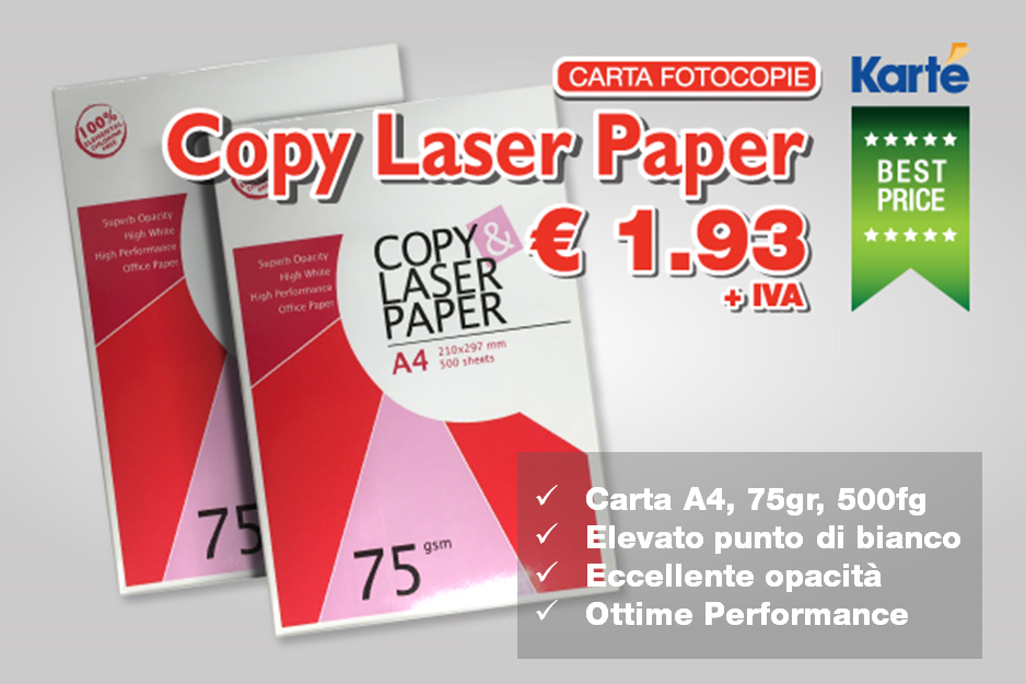 Carta Fotocopie Copy Laser Paper A4 75gr al prezzo speciale di € 1.93 + iva