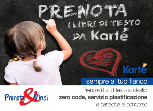Prenota i libri di testo scolastici da Karté.. zero code, puoi scegliere se ritirarli già con la copertina ed in più puoi partecipare al concorso Prenota&Vinci e vincere uno dei 2 buoni da 100€!!!